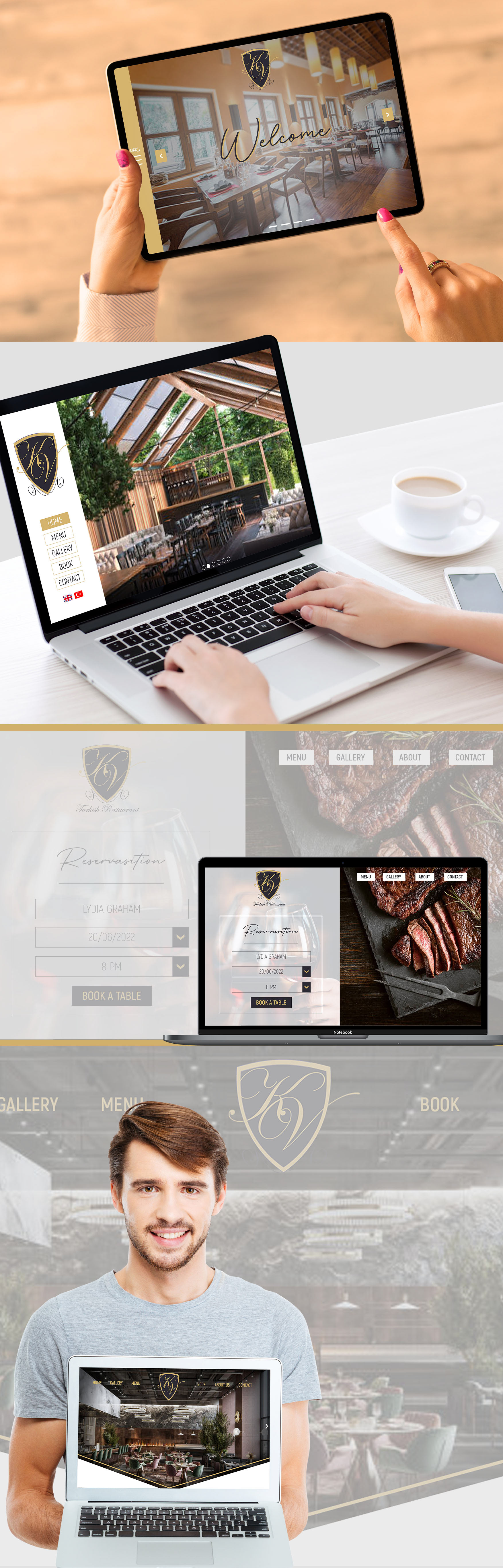 KV Restaurant is a Turkish cuisine restaurant which located in Cambridge. You may see some website design alternatives created by using their corporate colors.